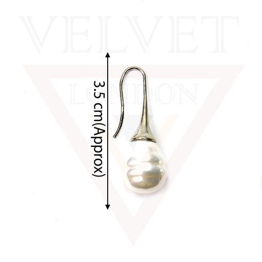 White Big Drop Pearl Earring Silver Dangle Drop Earrings Long Ear Hook Partywear