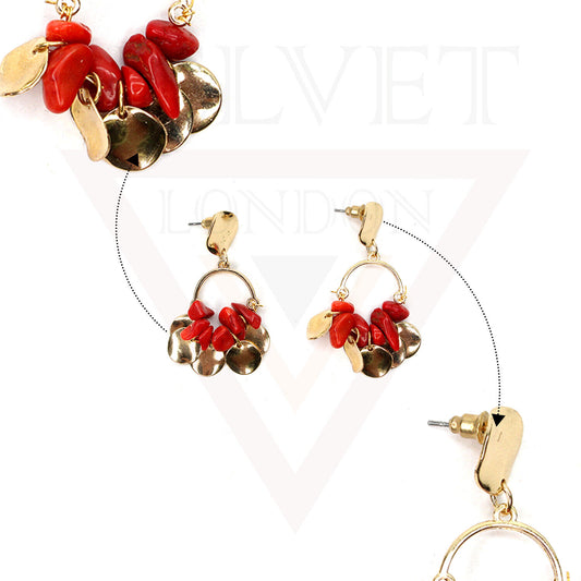 Drop Earrings Golden Stud Earrings Coral Dangle Beard Petal Stone Long Earrings