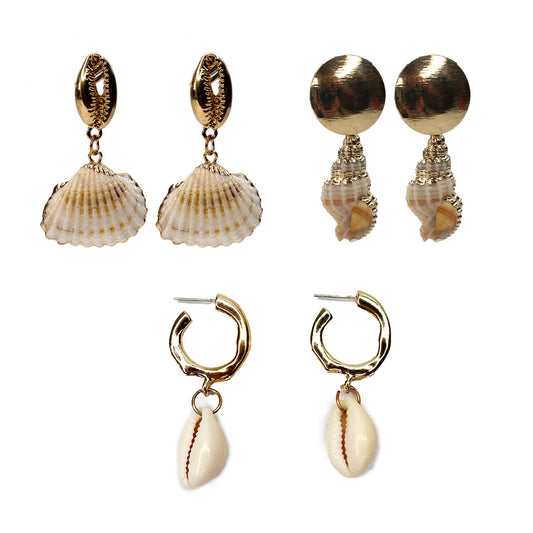 Golden Sea Shell Studs Set Hawaii Seashell Drop Earring Hoops Beach Summer