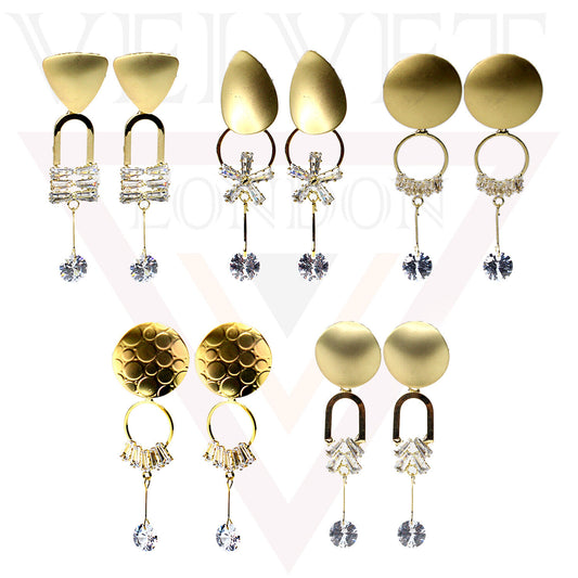 Crystal Drop Earrings Golden Diamond Geometric Shape Drop Dangle Stud Earrings