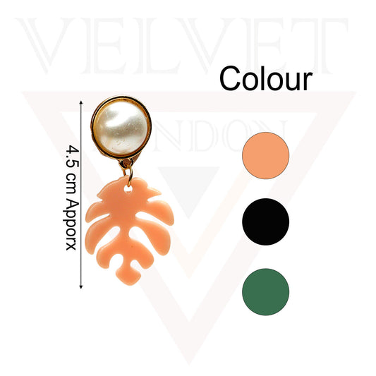 Palm Leaf Acrylic Earrings With Pearl Drop Dangle Earrings Stud Long Earrings