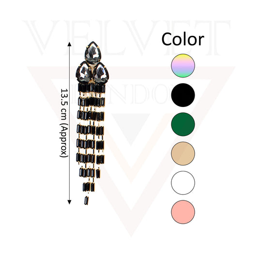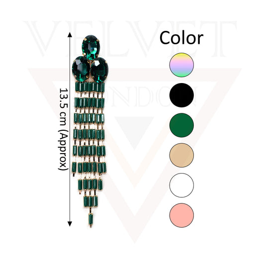 Long Drop Dangle Earrings Tassel Beads Diamond Oval Stud Earrings Party Wear