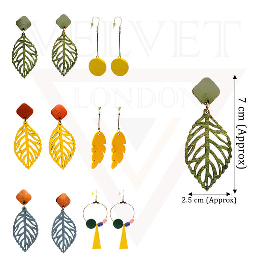 Long Earrings Stud Hoop Earrings Wooden Leafs Flower Round Dangle Drop Earrings