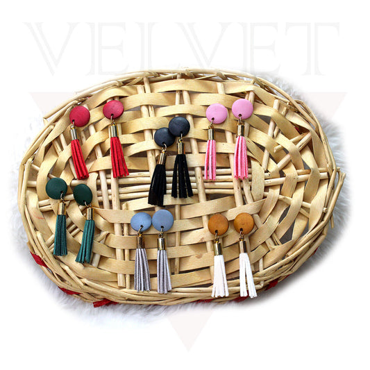 Wooden Round Studs Earrings Long Tassel Dangle Long Drop Earrings