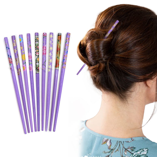 12x Assorted Wooden Colourful Long Hair Sticks Chopsticks Wooden Bun Holder Wood Stick Hair Accessories UK