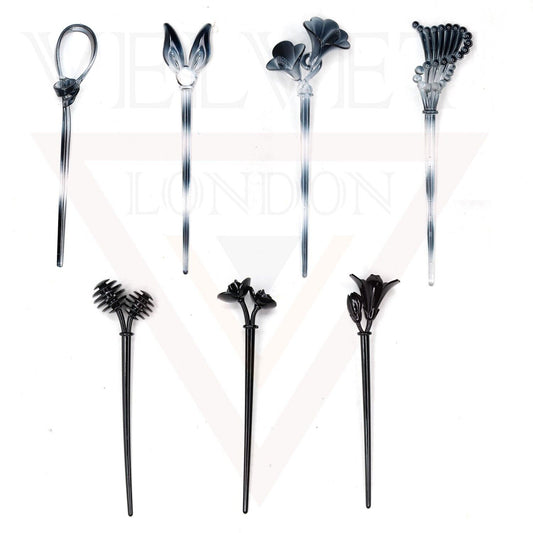 1x Hair Sticks Flower Black Brown Hair Bun Juda Stick Japanese Chopsticks