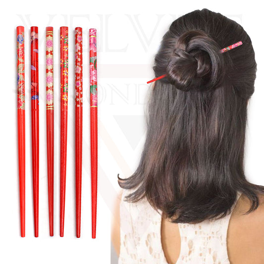 6x Assorted Wooden Colourful Long Hair Sticks Chopsticks Wooden Bun Holder Wood Stick UK