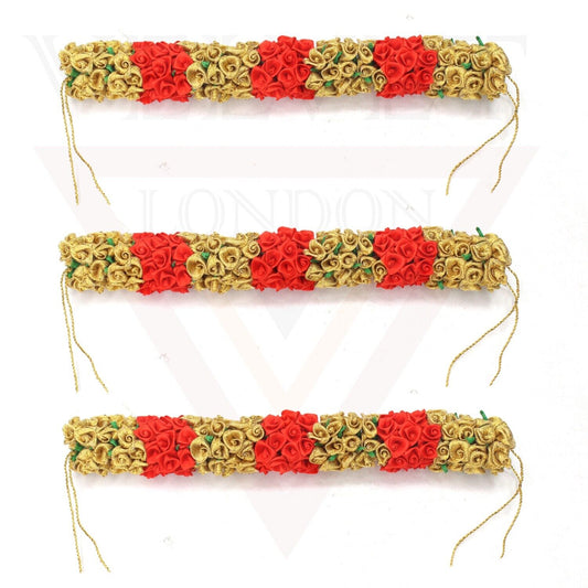 3x Hair Bun Maker Red & Gold Artificial Flower Gajra Jasmine Hair Styling Juda Gajra For Hair