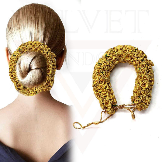 Golden Artificial Floral Hair Gajra Hair Bun Maker Juda Hair Styling Flower Crown