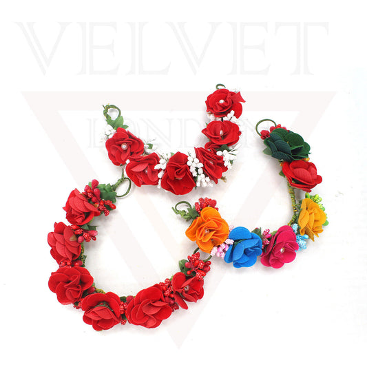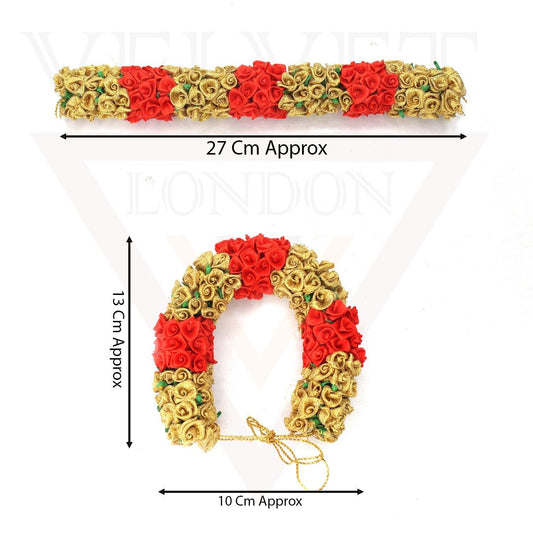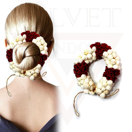 Bun Gajra Floral Artificial Rose Red & Gold Flower Jasmine Rose Hair Styling Juda