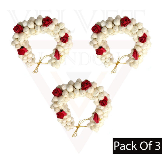 Floral White & Red Gajra Artificial Flower Bun Jasmine Rose Hair Clip Styling Juda UK