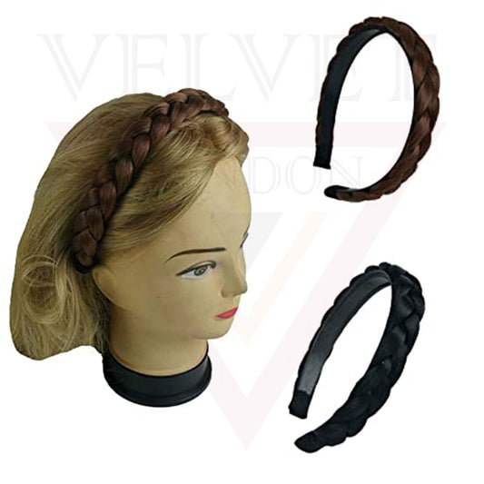 2x Brown Black Synthetic Hair Plaited Hair Band Women Braided Headband Hair Hoop