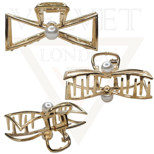 Hair Claw Clip Bow Shape Hair Clamp Metal Pearl Non-Slip Hair Jaw Catch Barrette