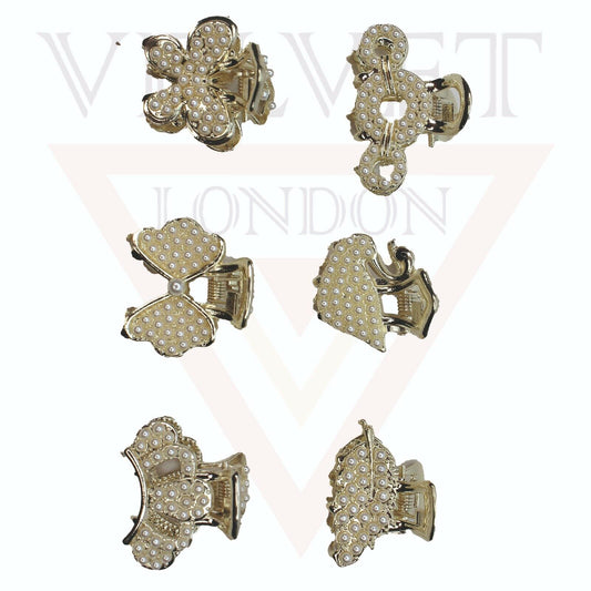 Hair Calw Clips 3x Assorted Design White Pearl Mini Clamp Butterfly Accessories