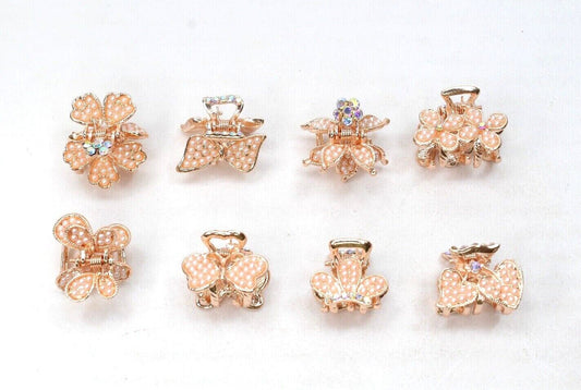 8x Mini Hair Claw Metal Diamond Pearl Non-Slip Claw Hair Clips Butterfly Clamp