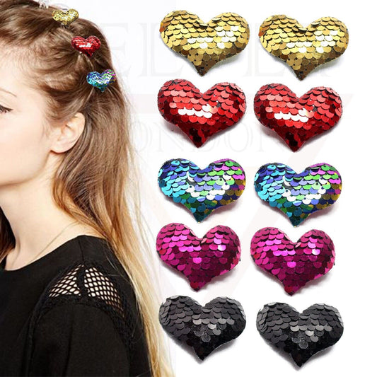 10x Hair Clips Heart Shape Clips Metal Snap Barrettes Sparkly Sequins Hairpins