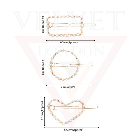 3x Metal Korean Style Hair Clips Pearl Hair Slide Snap Clips Hair Pins Barrette