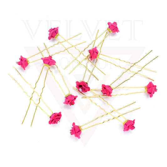 Pink Bridal Hair Pins Rose U Pins Flower Hair Clips Brooch Wedding Bridesmaid UK