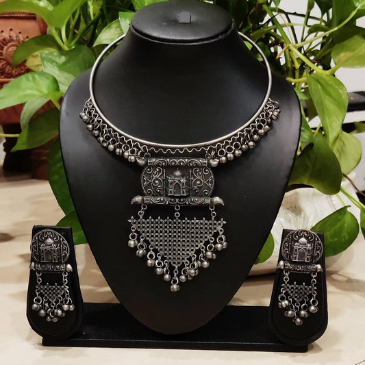 Oxidized Necklace Earrings Antique Traditional Choker Jewellery Set for Girls