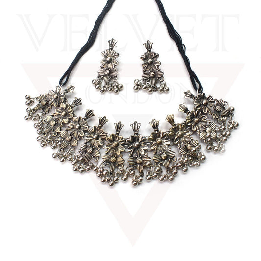 Necklace Earrings Set Flower Antique Oxidized Traditional Boho Jewellery Set