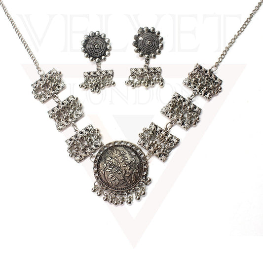 Necklace Earring Set Tribal Antique German Traditional Oxidized Jewellery Sets