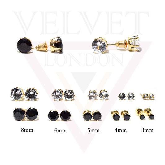 Crystal Stud Earrings Black Clear Cubic Zirconia Round Ear Stud Piercing Unisex