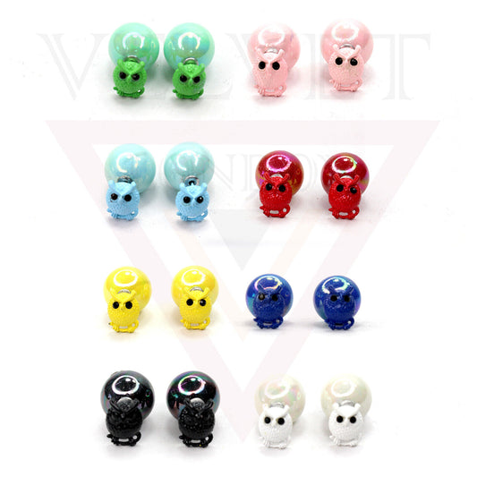 Owl Stud Earrings Pearl Double Sided Ear Studs Light Weight Cute Partywear