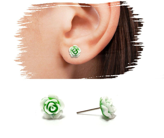White Shaded Flower Stud Earring Girl Colourful Rose Stud Earring Pierced Women