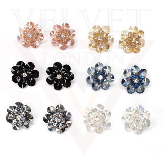 Flower Earrings Crystal Stud Earrings Diamond Floral Beads Ear Jewellery Gifts